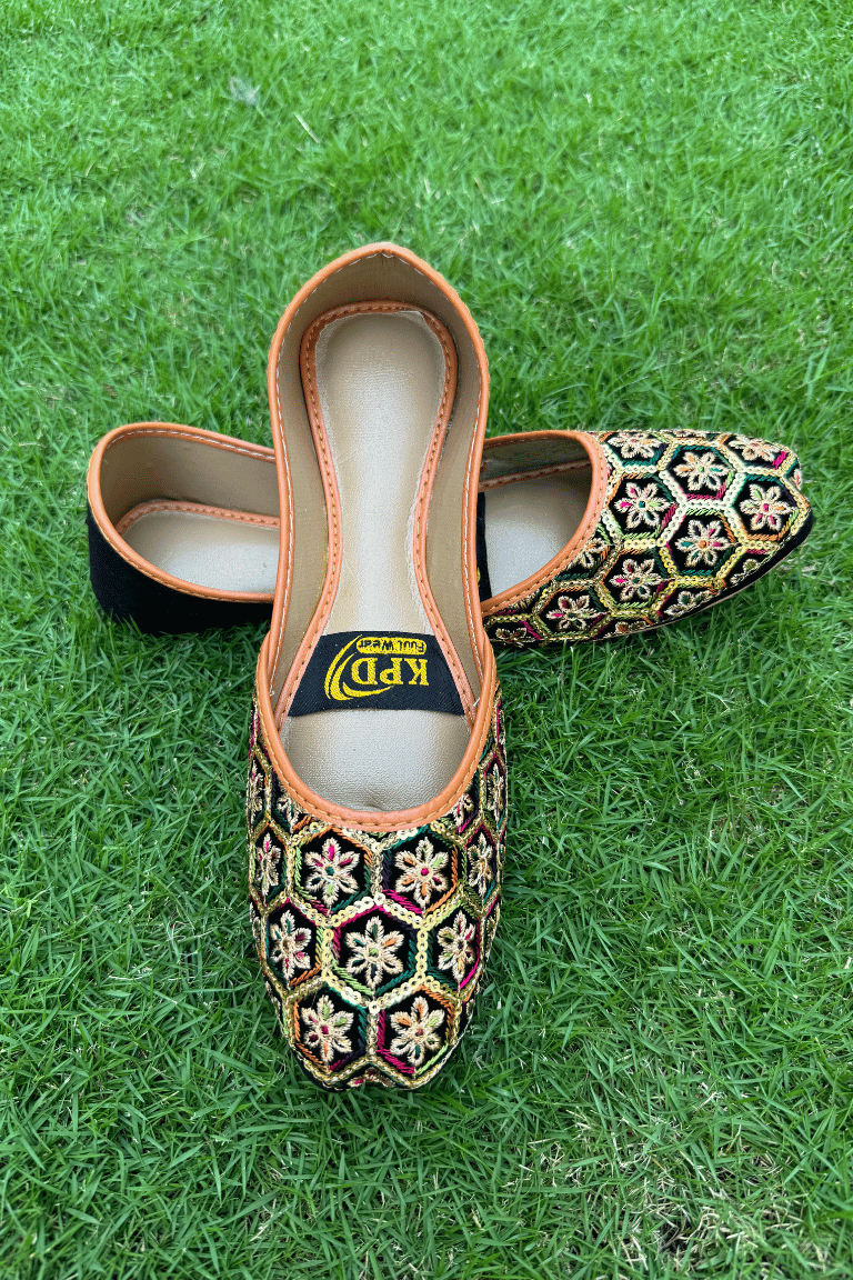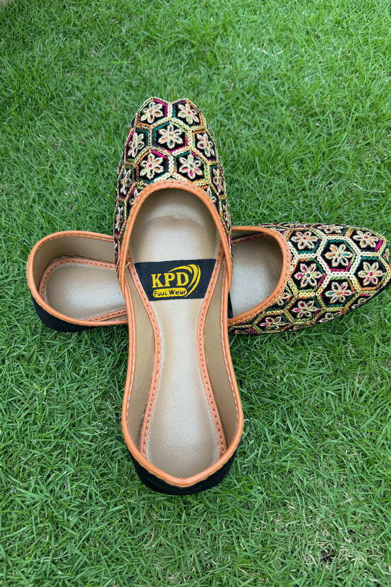 Elevate your ethnic style with these handcrafted deep green khusas. Featuring intricate detailing and a rich, luxurious hue, they are perfect for weddings, festive occasions, or special celebrations. Combining comfort with timeless elegance, these khusas make a bold yet sophisticated statement with every step.